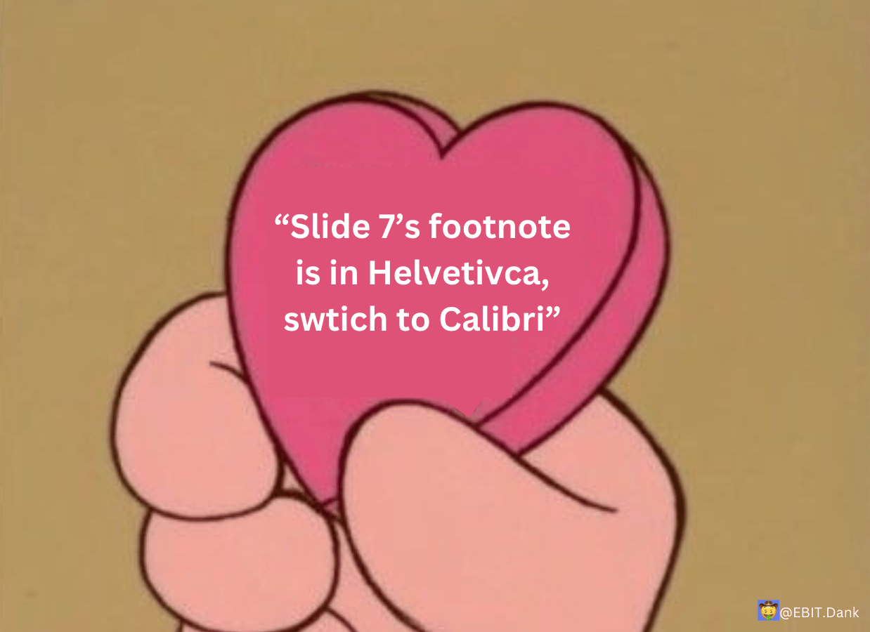 “The good analysts all quit this week for PE, so the bar for quality just dropped like 10%. They can’t get rid of us all!”