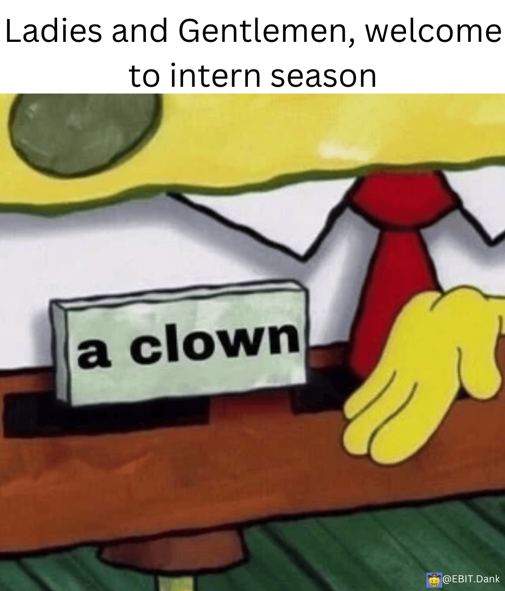 It is Wednesday my dudes, and our interns came to desk after orientation the past 2 days. Having the nervous, excitable energy has changed the bullpen into a zoo! Happy intern season, to all those who celebrate. Now to the memes: