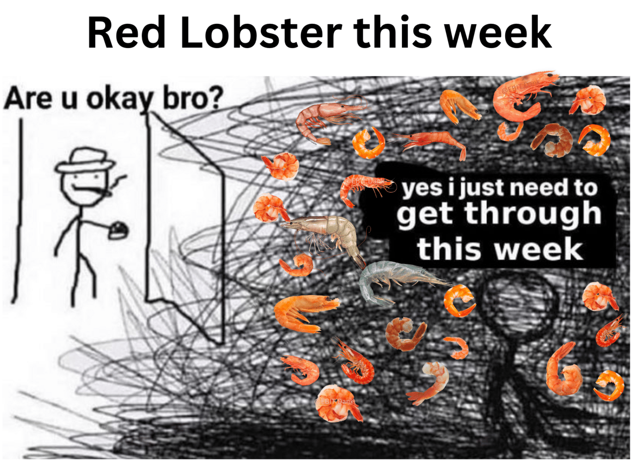 It’s Tuesday, and I can’t stop thinking about cheddar bay biscuits and shrimp. Red Lobster going bankrupt and utilizing shrimp fraud is such an iconic combo. I personally ordered Red Lobster with my grubhub credit tonight, gotta pour one out for a legend.